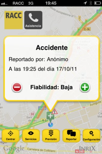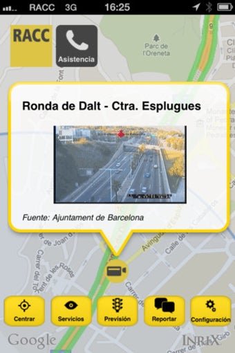 De forma visual, sobre un mapa, verás la información sobre gasolineras cercanas, radares de velocidad y, lo más esencial, información y cámaras en directo para conocer cualquier posible problemas en la red de carreteras. Si quieres contribuir, RACC Infotransit cuenta también con una práctica opción para enviar incidencias.
